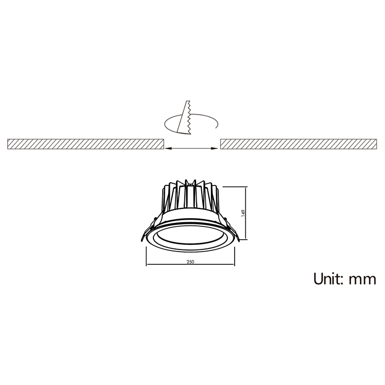 | Model No. | Watts | Lamp Outer Size | Cutout Hole Size | Beam Angle |