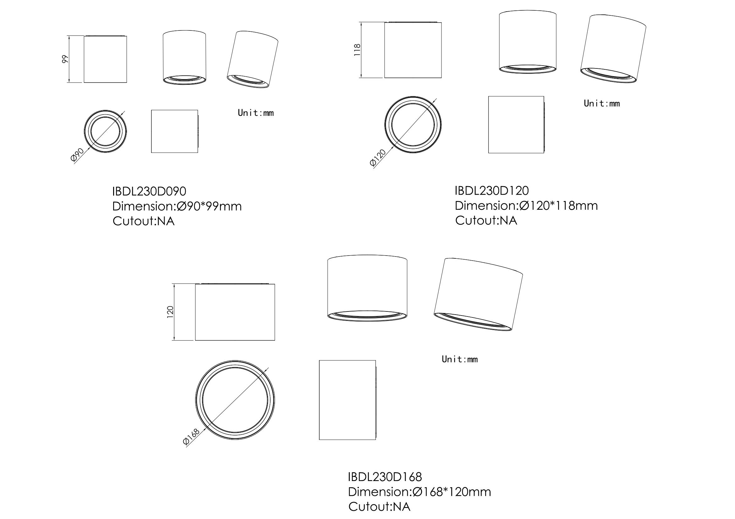| IBDL230D090 | 15W | Ø90×H99mm | | | 110° Fixed |