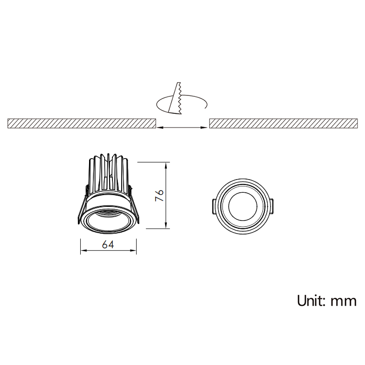 8W,Cutout 75mm,Beam15°/20°/24°/38°/40°/45°/60°,100lm/W,UGR<13,IP65,Safety Glass,Reflector Changeable,Honeycomb Louver Optional,Deep Trim Recessed LED Downlight