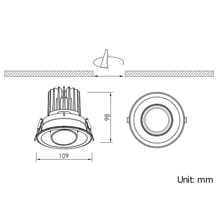 10W,Cutout 95mm,Beam15°/20°/24°/36°/38°/40°/45°/60°,Horizontal 355° + Vertical 30°,IP65,Honeycomb louver Optional,Eyeball Adjustable LED Downlight