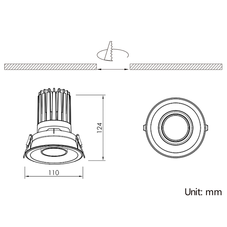 Model No.WattsLamp Outer SizeCutout Hole SizeBeam Angle
