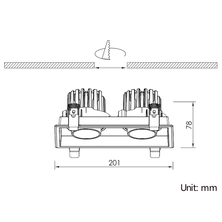 | IBSP104SCT095H78-2F-EB | 2x10W | L201×W106xH78mm | L190×W95mm | Reflector 15°| 24°|38°|45° (horizontal 355°+vertical 30°) |