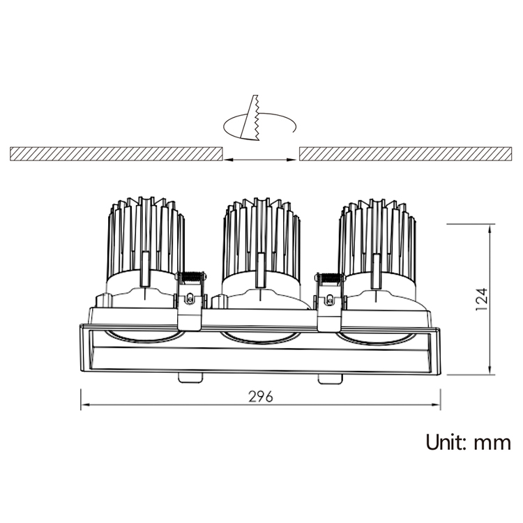 | IBSP104SCT095H124-3F | 3x25W | L296×W106xH124mm | L285×W95mm | Reflector 15°| 24°|38°|45°|60° (horizontal 355°+vertical 30°) |