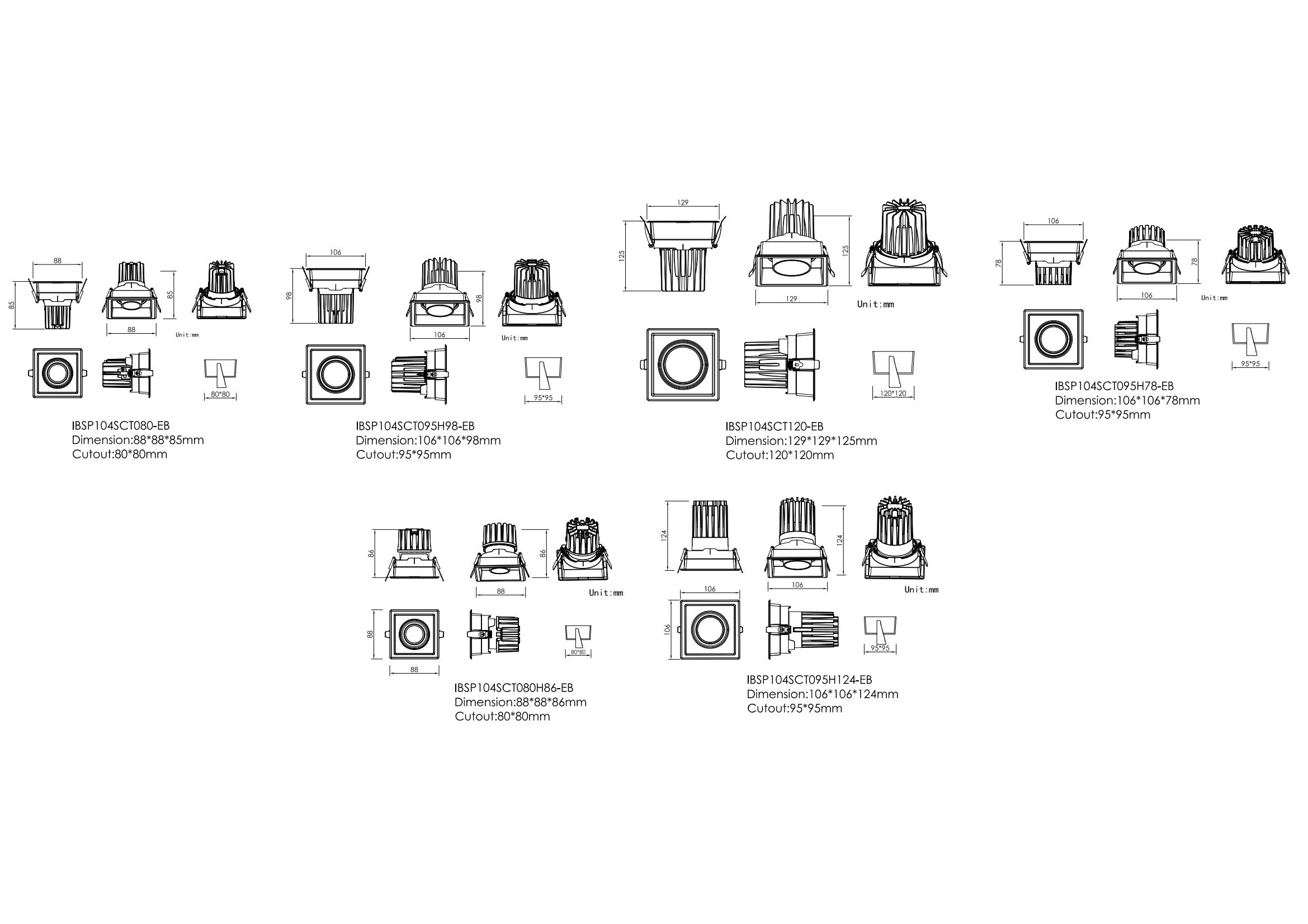 IBSP104SCT095H78-EB10WL106xW106×H78mmL95×W95mmReflector 15°| 24°|38°|45°