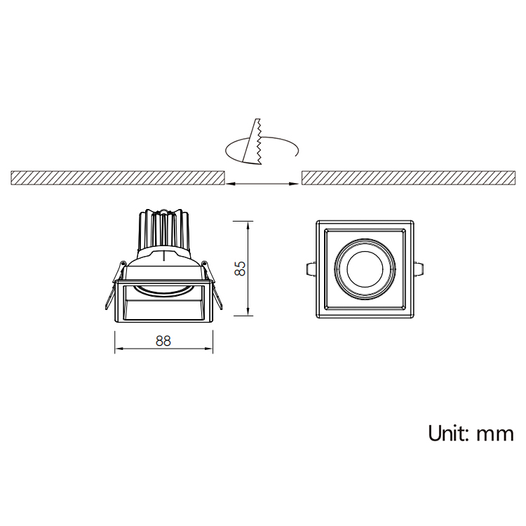 8W,Cutout L80×W80mm,Beam15°/20°/24°/36°/38°/40°/45°/60°,Horizontal 355° + Vertical 30°,IP65,Honeycomb louver Optional,Square Adjustable LED Downlight