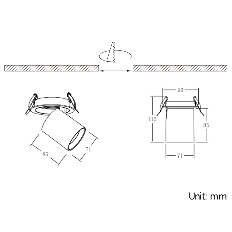 | Model No. | Watts | Lamp Outer Size | Cutout Hole Size | Beam Angle |