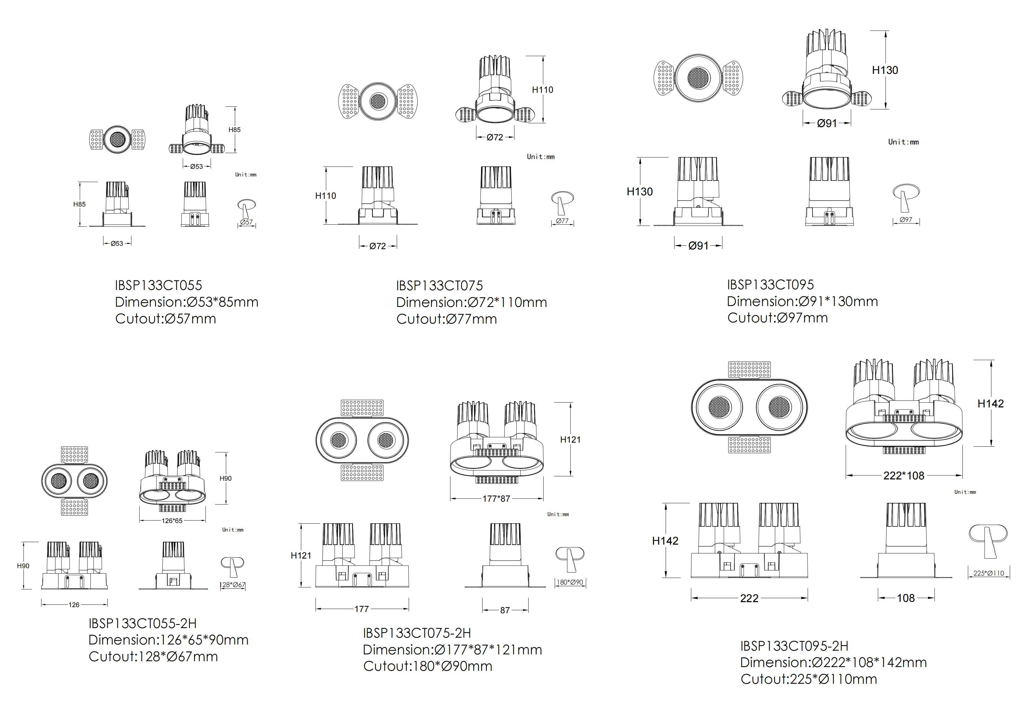 首页 > 产品展示 > LED Downlight Narrow/Medium Beam Series > IBSP133-2H-Adjustable 8-25W
