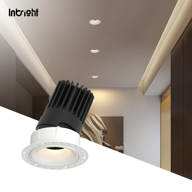 Trimless Adjustable LED Downlight 355° Rotatable | Architectural Recessed Spotlight 15°–60° Beam | Anti-Glare Commercial Lighting