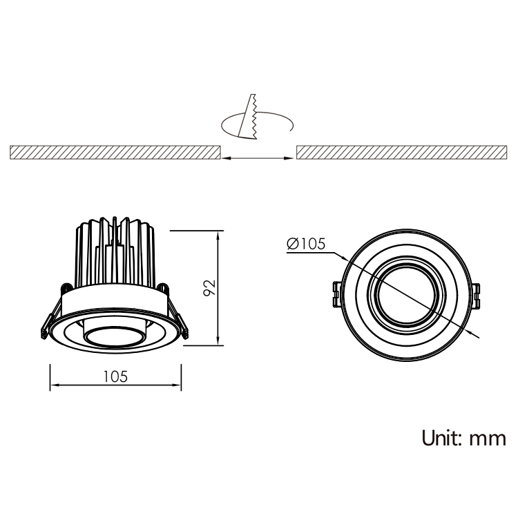 15W,Cutout 95mm,Beam15°/24°/38°/45°/60°,100lm/W,Adjustable 30°,IP65 with Glass Diffuser,Honeycomb louver Optional,Eyeball Recessed LED Downlight
