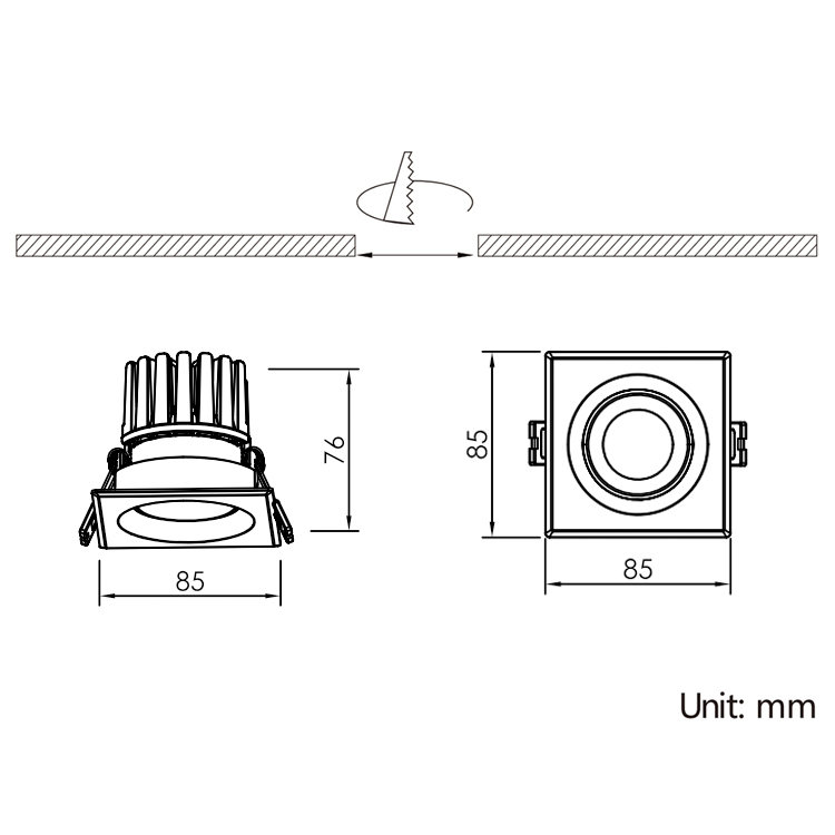 首页 > 产品展示 > LED Downlight Narrow/Medium Beam Series > IBSP151S-Square-Adjustable 8-25W