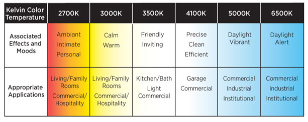Understanding the color of light, also known as Kelvin temperature (K), can make it easier for you to choose lighting that will give you the effect you want.