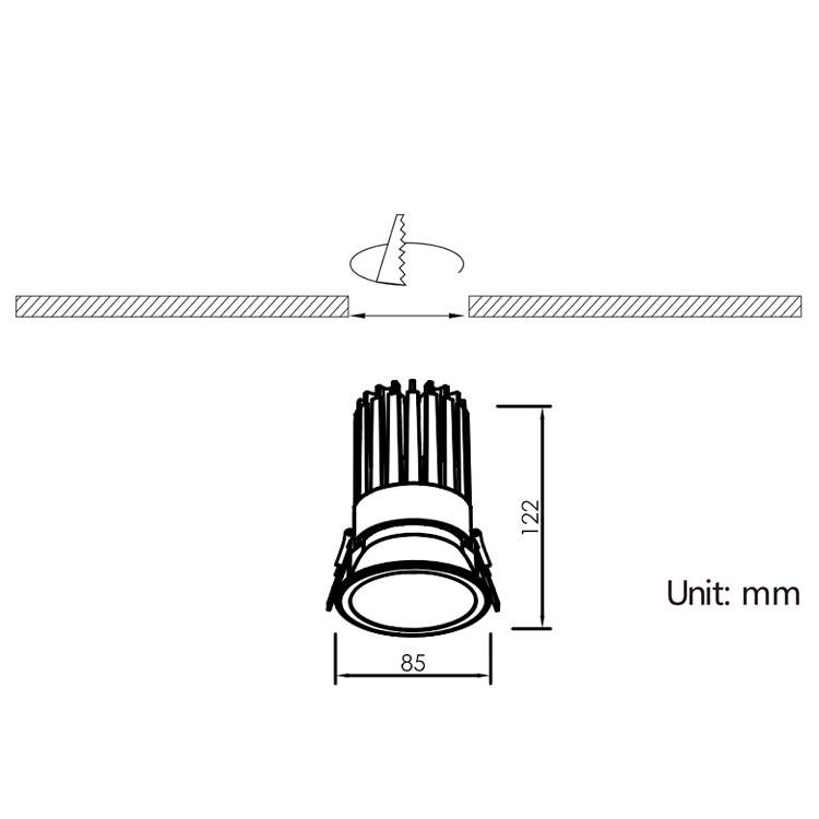 | IBSP101CT075 (H94) | 15W | Ø85mm×H94mm | Ø75mm | Reflector 15°| 24°|38°|45°|60° (Fixed) |