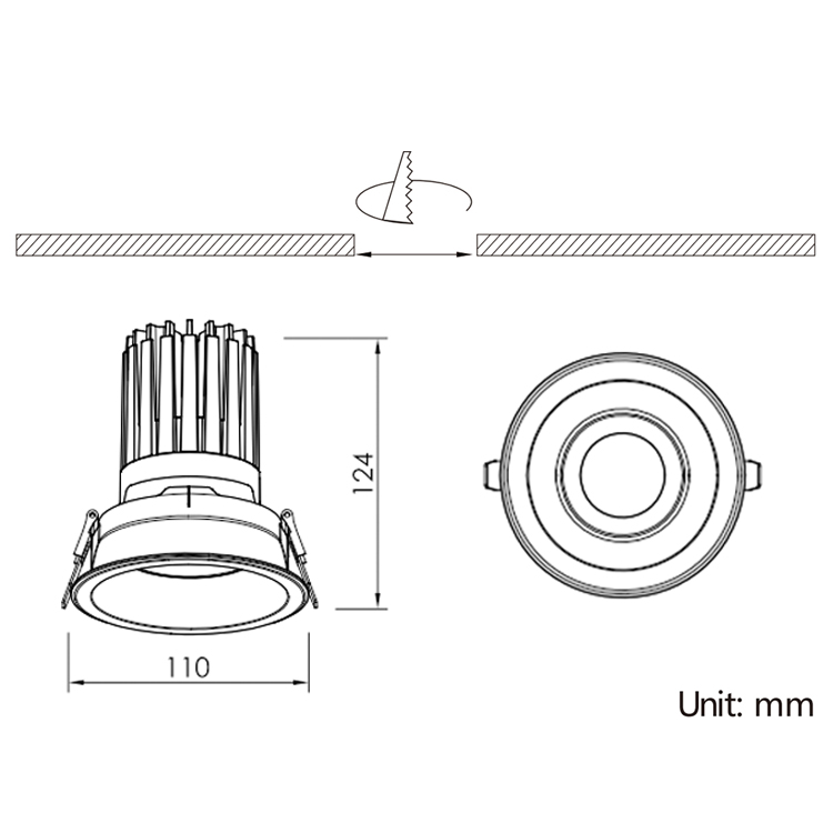 25W,Cutout 95mm,Beam15°/20°/24°/36°/38°/40°/45°/60°,Horizontal 355° + Vertical 30°,UGR<19,IP65,Honeycomb louver Optional,Deep Trim Adjustable LED Downlight