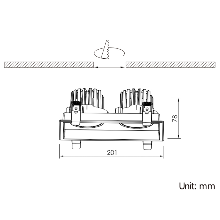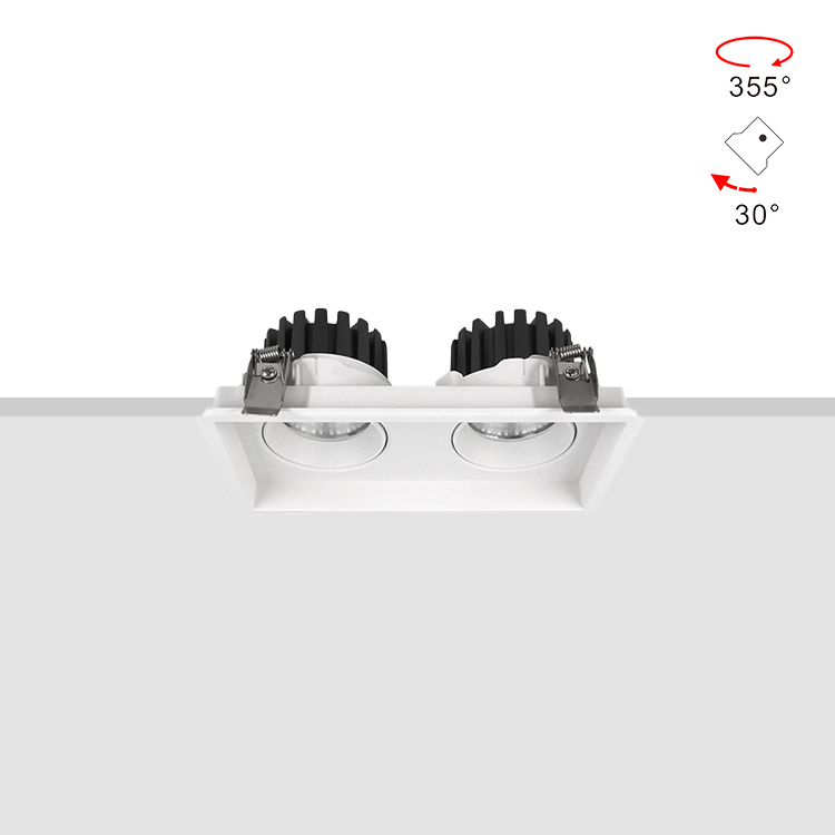 2*10W,Cutout L190×W95mm,Beam15°| 24°|38°|45°|60°,Horizontal 355° + Vertical 30°,IP65,Honeycomb louver Optional,Twin-head Adjustable LED Downlight