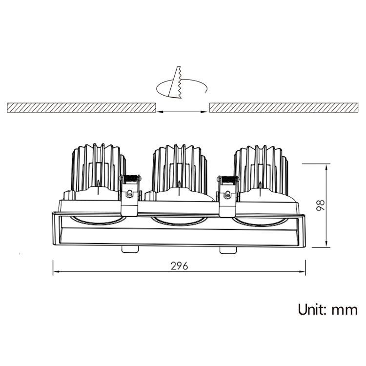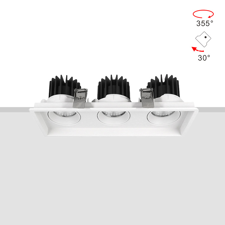 3*15W,Cutout L285×W95mm,Beam15°| 24°|38°|45°|60°,Horizontal 355° + Vertical 30°,IP65,Honeycomb louver Optional,Twin-head Adjustable LED Downlight