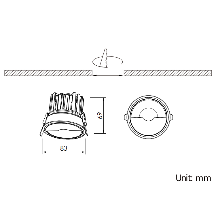 Model No.WattsLamp Outer SizeCutout Hole SizeBeam Angle
