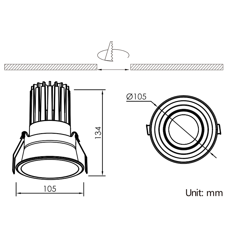 Model No.WattsLamp Outer SizeCutout Hole SizeBeam Angle