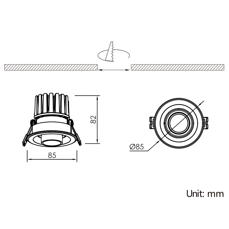 | IBSP151CT075H82-EB | 15W | Ø85*H82mm | Ø75mm | Reflector 20°| 40° Lens 15°| 24°|36° (Adjustable:vertical 30°) |