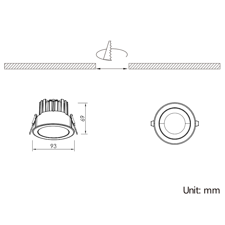 Model No.WattsLamp Outer SizeCutout Hole SizeBeam Angle